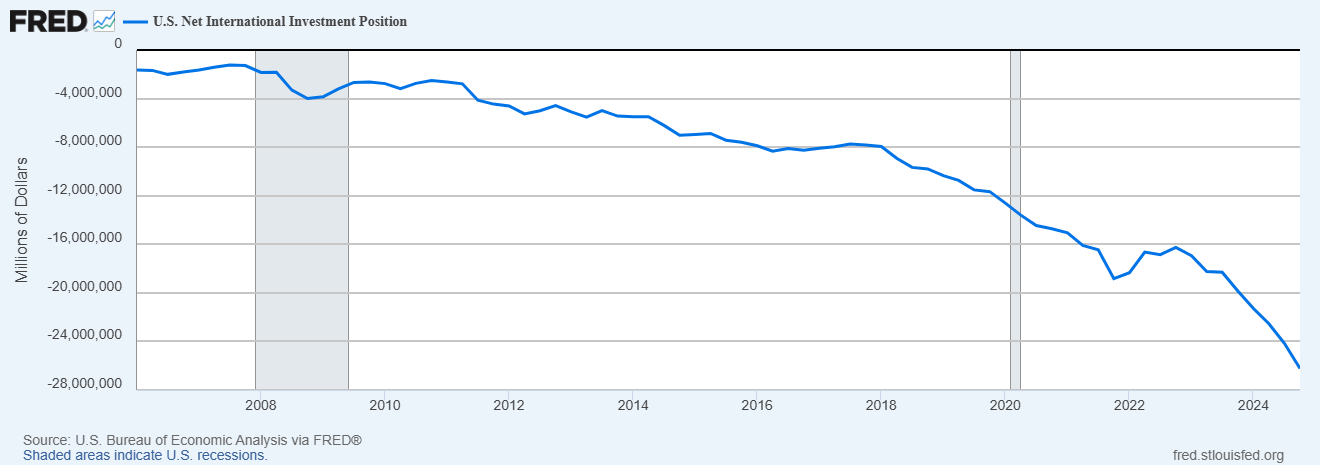 U.S. Bureau of Economic Analysis, U.S. Net International Investment Position [IIPUSNETIQ], retrieved from FRED, Federal Reserve Bank of St. Louis; https://fred.stlouisfed.org/series/IIPUSNETIQ